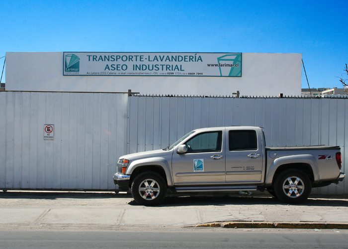 Nuestra empresa está ubicada en la ciudad de Calama en la Calle Juan José Latorre 2555 (Frente al Liceo Luis Cruz Martínez). Somos una empresa consolidada y enfocada a entregar servicios de Transporte de Personal, Lavandería y Aseo. Nuestra planta de lavado cuenta con calefactores solares, máquinas de lavado de 55 kg, maquinas secadoras de 30 kg, rodillos de planchado, ablandador de agua y pozos decantadores.